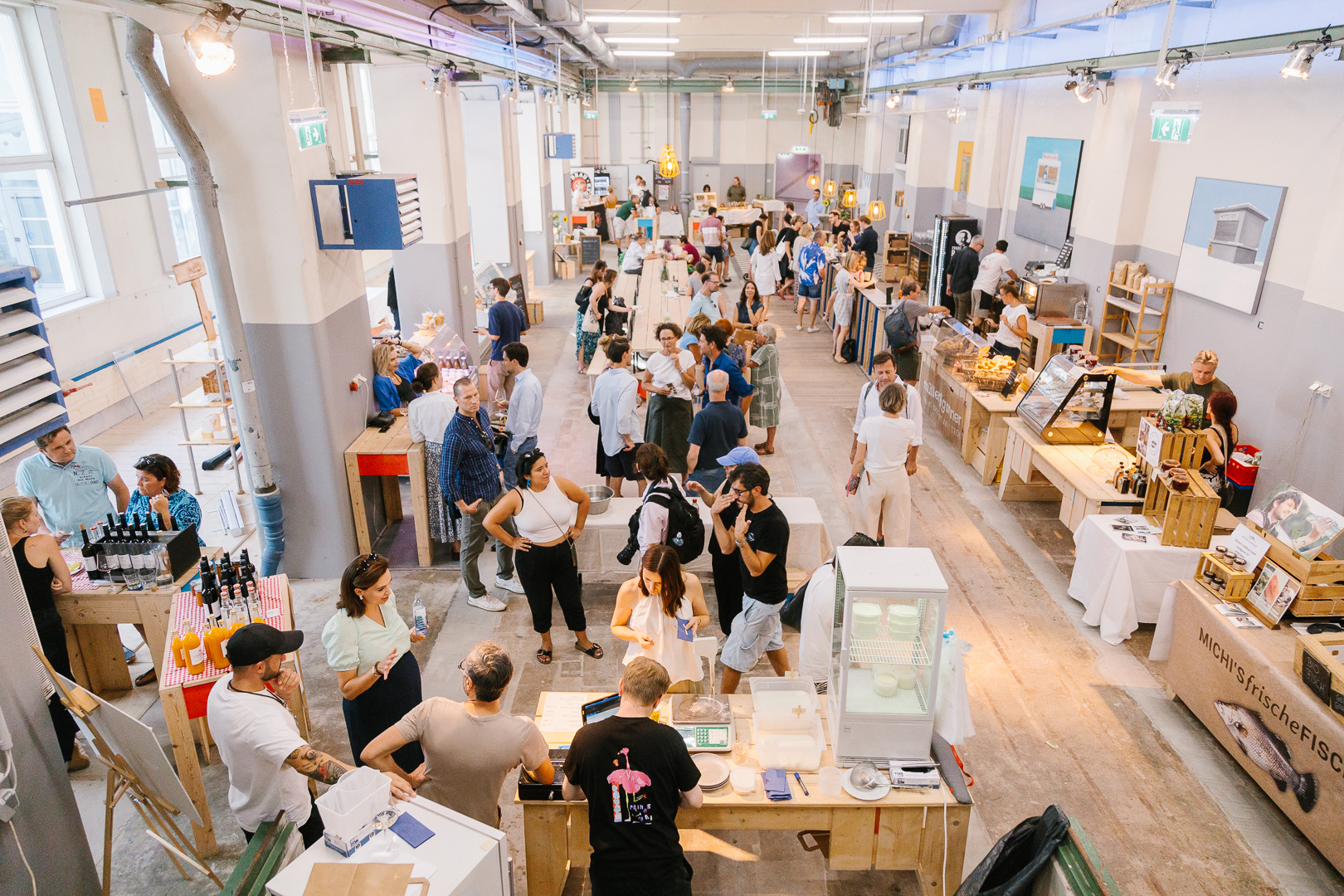 Since autumn 2024, the hall on the ground floor has been transformed into a market hall every Friday and Saturday, becoming a stage for regional producers and their seasonal products. In addition to regular market hall operations, thematic focuses are set through events, special formats, workshops, as well as networking and B2B events to round out the overall experience.