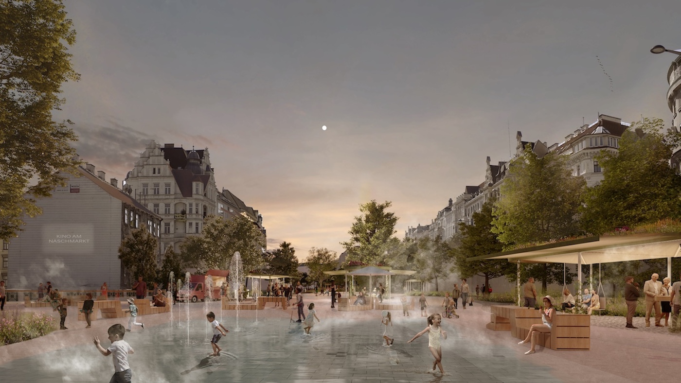 The planning area is situated between the ‘Wienzeilen’, two parallel streets that took shape in the late 19th century following the regulation of the Vienna River. Most of the surrounding buildings were built during the same period, a time in which Vienna underwent an incredible transformation. Today, once again, Vienna is on the verge of a vast progression to becoming a more climate resilient, ecological, and socially inclusive city through climate-effective measures, new non-commercial public spaces, and a focus on shared infrastructure which serves as a common resource.