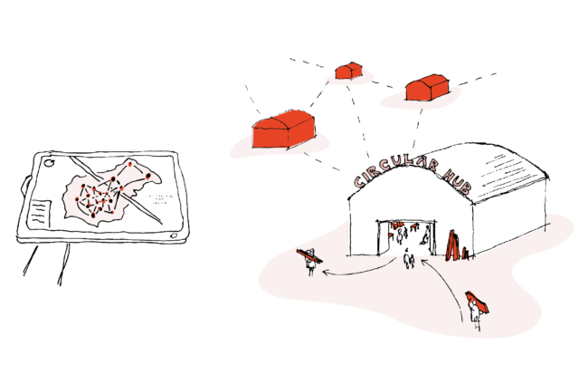 Circular Architecture requires dedicated infrastructures: Circular Hubs for recycling and reprocessing, spaces for storage and sorting of dismantled components, and points of sale for reused materials. Digital databases for the construction industry enable actors to exchange, reserve and purchase components and materials.