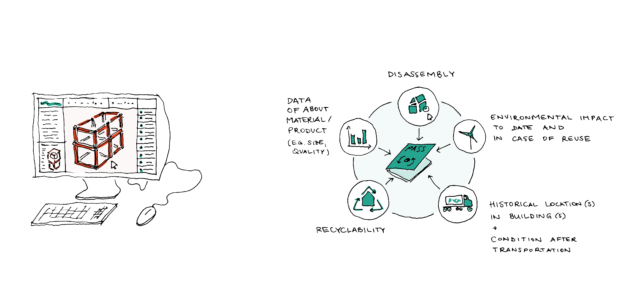 Designing with circular BIM includes the creation of a material catalogue that documents components, their location and potential reuse. A material passport records information on individual elements and provides instructions for replacement, repair and further use of installed components.