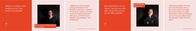 A specially designed card game guided the discussions on process design, methods, and actors. Through this playful exchange, successful strategies, failed process designs, and innovative approaches became visible.